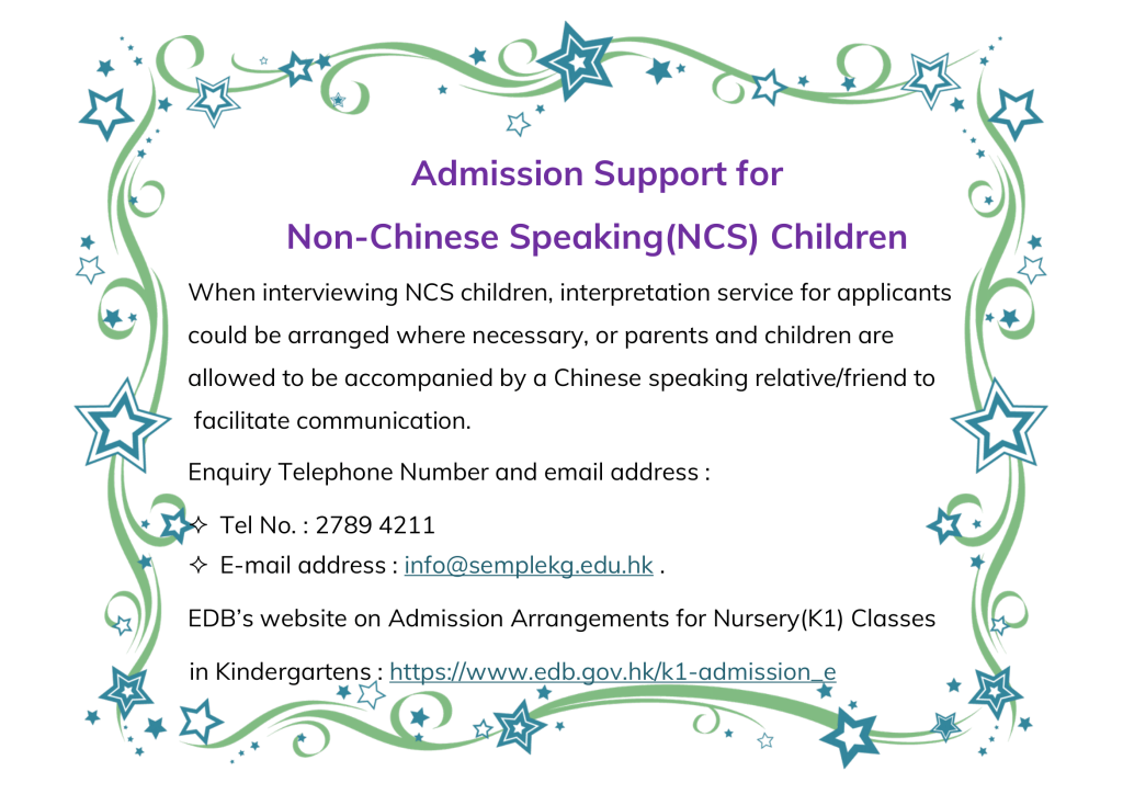 • After admission, parents are requested to bring their “Registration Certificate or Admission Pass” and the registration fee ($900 for half-day classes/$1500 for full-day classes) to the school to complete the registration procedures. If the registration procedure is not completed before the expiry date, the place will be deemed to have been abandoned automatically, and the abandoned place will be replaced by the next person.