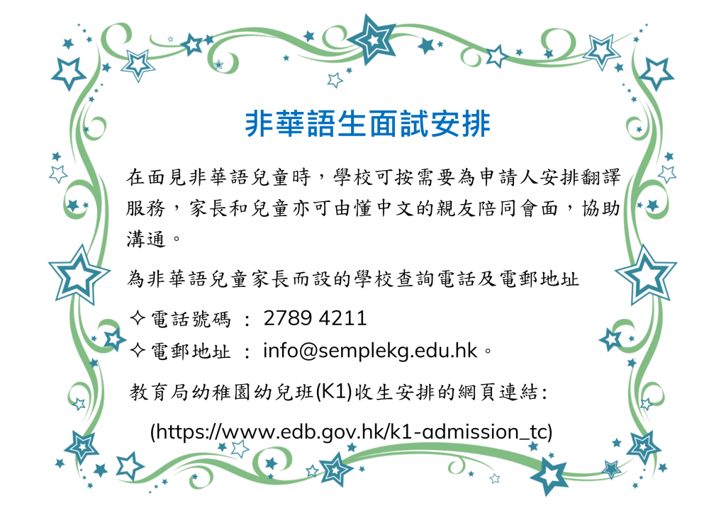 • 學生面試後一星期內,本校將會通知家長面試結果,有需要時校方會決定是否安排第二次面試。