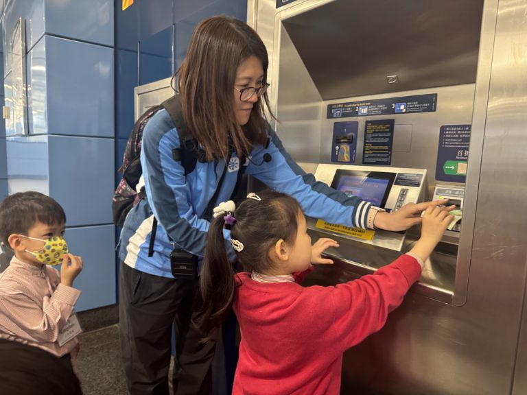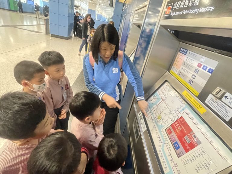 在 「港鐵奧運站」,幼兒能觀察及認識到港鐵站的設施及乘搭港鐵的程序。